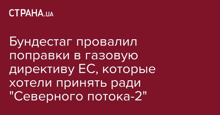 Бунедстаг Германии провалил голосование правительственного законопроекта о "распространении правил внутреннего рынка газа на трубопроводы между государствами-членами ЕС и государствам - не членами ЕС", который предполагал существенные льготы для газопровода "Северный поток-2" в обходе газовой директивы Евросоюза.