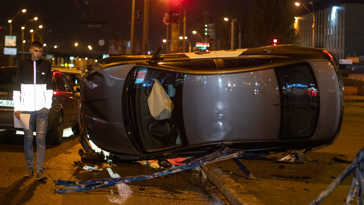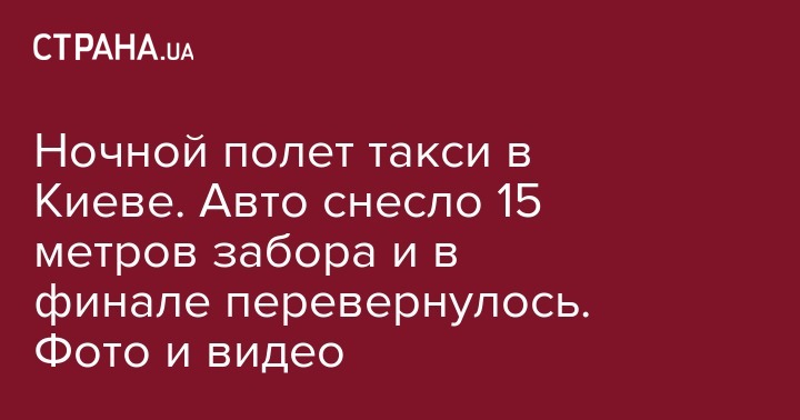 Ночной полет такси в Киеве. Авто снесло 15 метров забора и в финале перевернулось. Фото и видео