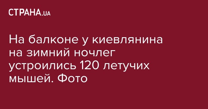 В Киеве на улице Верховинной на одном из столичных балконов "устроились на побывку" 120 летучих мышей. Об этом написала Команда спасения животных Киева на своей странице в Facebook.
