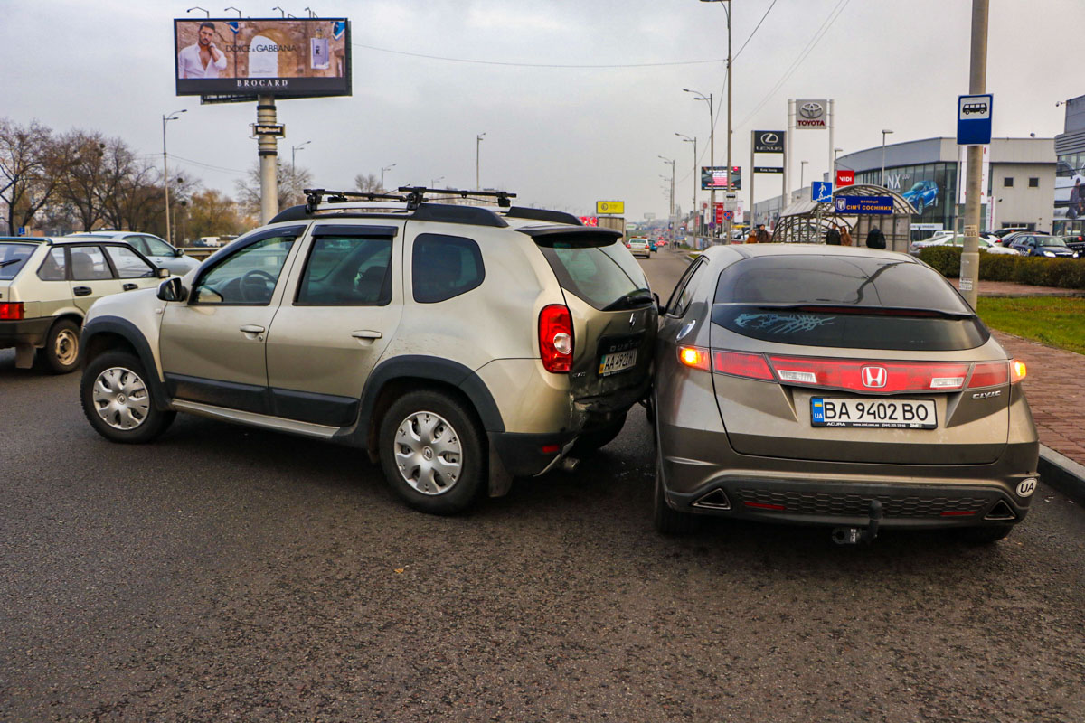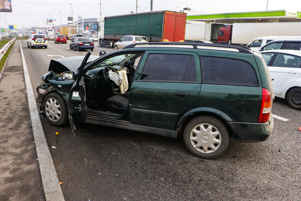 По словам водителя Renault, он ехал по кольцевой в сторону Жулянского моста, в этот момент в его машину врезался Opel. От удара машину Renault понесло по дороге в сторону обочины и он столкнулся с Honda.