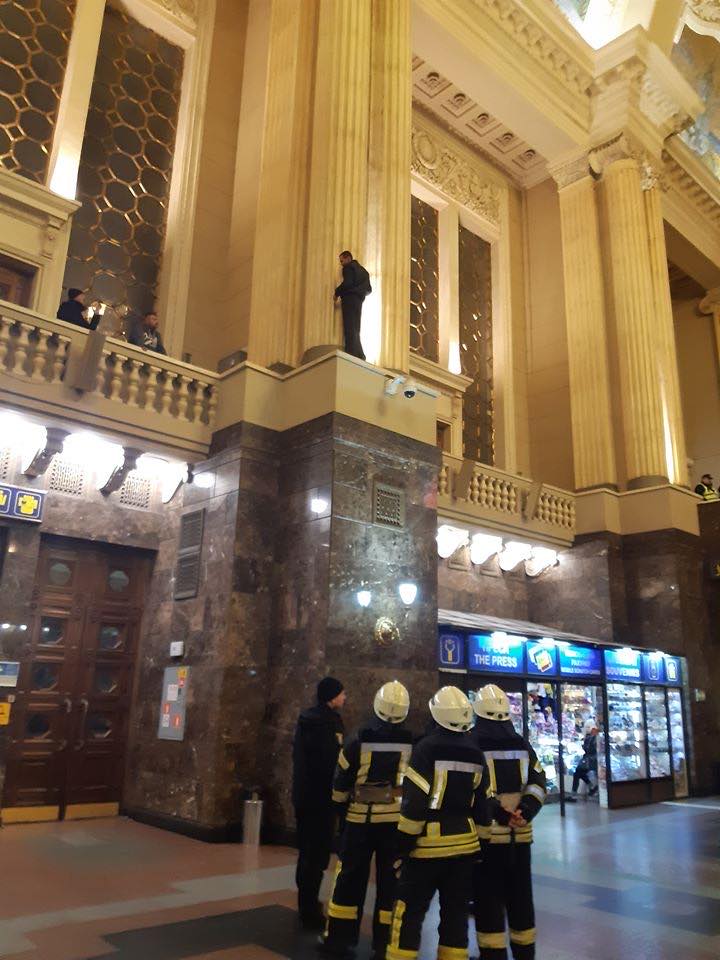 Мужчина залез на колонну в здании Центрального вокзала и пытался спрыгнуть с нее. Одним из первых в ситуацию вмешался сотрудник полиции, который работает на самом вокзале. Он сразу начал вести с мужчиной переговоры.