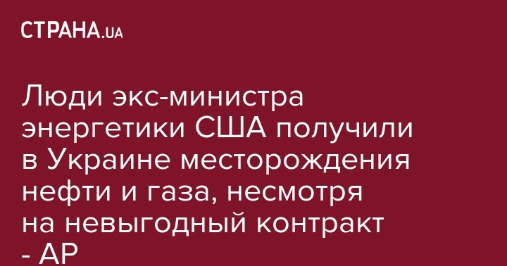 Люди экс-министра энергетики США получили в Украине месторождения нефти и газа, несмотря на невыгодный контракт - AP