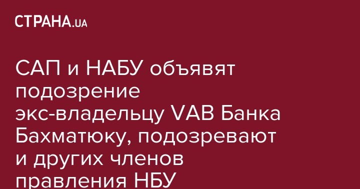 САП и НАБУ объявят подозрение экс-владельцу VAB Банка Бахматюку, подозревают и других членов правления НБУ