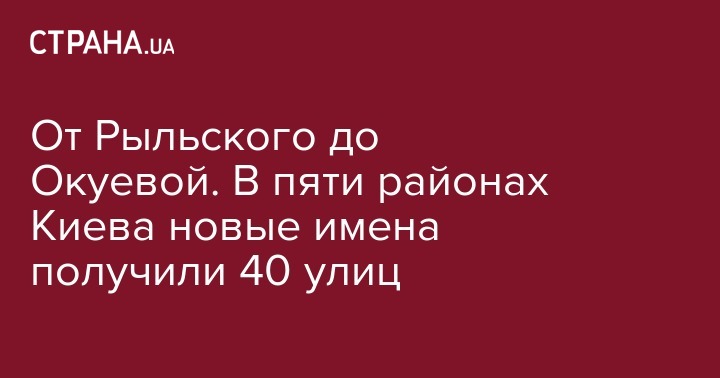 От Рыльского до Окуевой. В пяти районах Киева новые имена получили 40 улиц