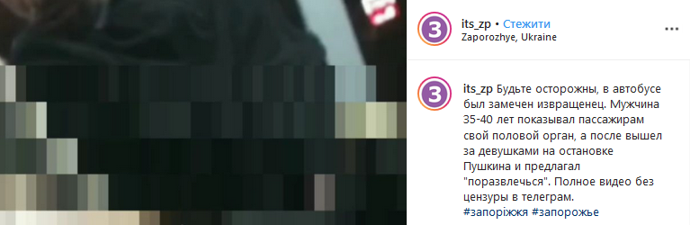 В Запорожье извращенец прямо в автобусе показывал девушкам свое "достоинство" и предлагал развлечься