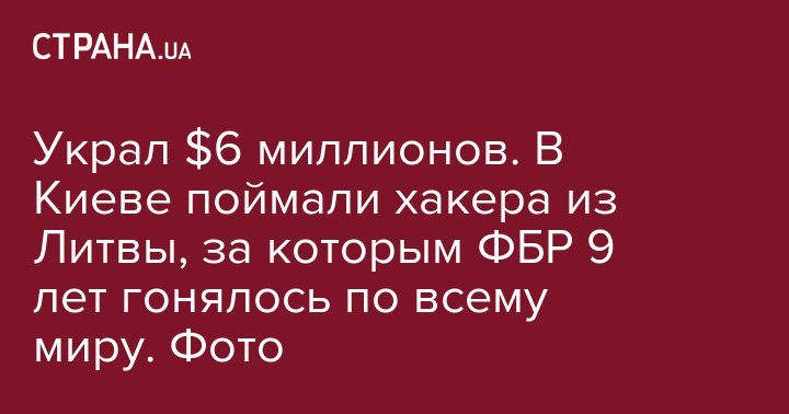 В Киеве взяли под арест литовского хакера, которого разыскивало ФБР США за хищение с банковских счетов 6 миллионов долларов.