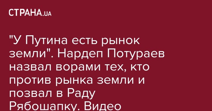 Сегодня в Раде нардепы собираются рассмотреть 11 законопроектов о рынке земли. Под стенами парламента на акцию протеста собрались националисты, а в сессионном зале с трибуны звучат эмоциональные заявления парламентариев. В частности, "слуга народа" Никита Потураев назвал ворами тех, кто выступает против открытия рынка земли в Украине, призвал в зал парламента Рябошапку и Сытника и аргументировал тем, что даже у Путина есть рынок земли. Об этом сообщает корреспондент "Страны".