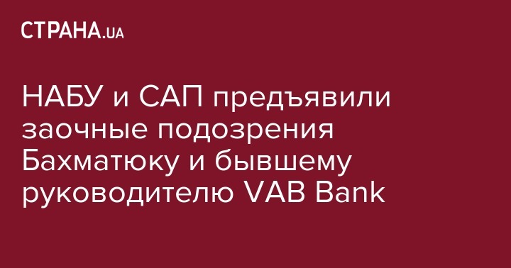 НАБУ и САП предъявили заочные подозрения Бахматюку и бывшему руководителю VAB Bank
