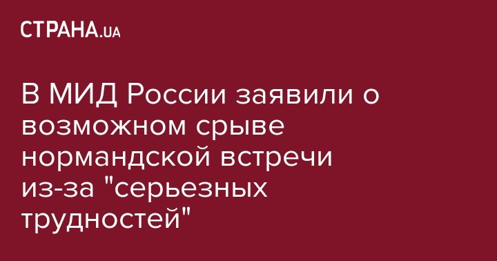 В МИД России заявили о возможном срыве нормандской встречи из-за "серьезных трудностей".   Такую точку зрения высказал в среду журналистам заместитель министра иностранных дел Александр Грушко, пишет ТАСС.
