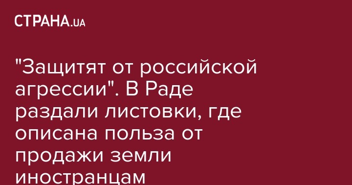 "Защитят от российской агрессии". В Раде раздали листовки, где описана польза от продажи земли иностранцам