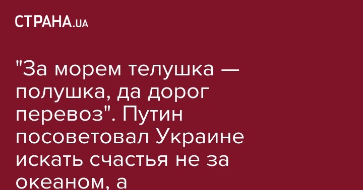 "Он [Назарбаев] всегда исходил из того, что Украина должна искать счастье не за морями. За морем телушка — полушка, да дорог перевоз. Вот не за океаном надо искать счастья, а со своими соседями договариваться. Тоже правильный подход", - заявил президент во время пресс-конференции.