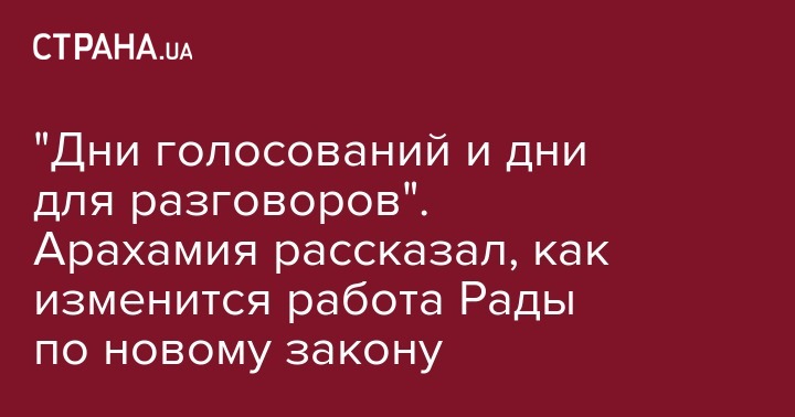 "С целью защиты чувств журналистов, а также с целью сохранения их внимания, необходимо сделать дни голосований и дни для разговоров. Приходите, например, в четверг и смотрите сколько мы всего напринимали, хотите послушать, кто что думает - приходите в другие дни, а больше времени нужно тратить на работу в комитетах - это и есть настоящая работа народного депутата ", - заявил Арахамия в пятницу во время общения с журналистами в кулуарах Верховной Рады.