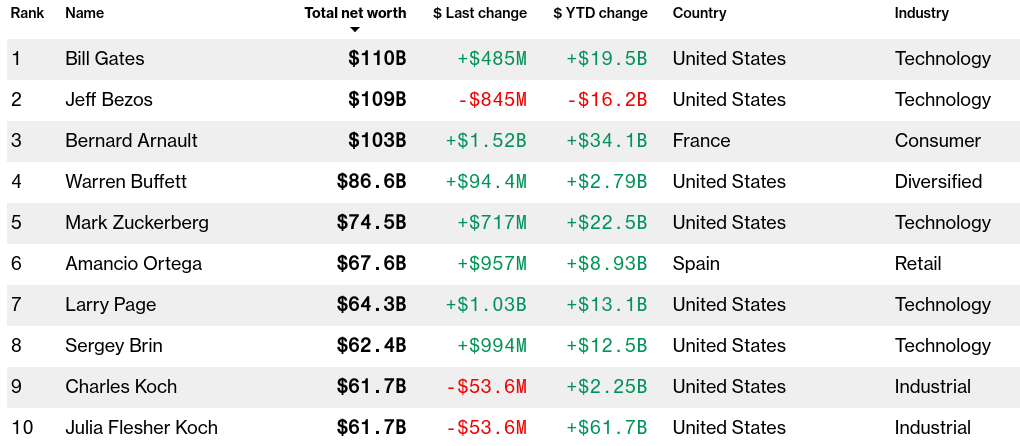 Основатель Microsoft Билл Гейтс впервые за два года обогнал основателя Amazon Джеффа Безоса в списке миллиардеров по версии Bloomberg. Состояние Гейтса оценивается примерно в 110 миллиардов долларов, а Безоса - в 109 миллиардов.