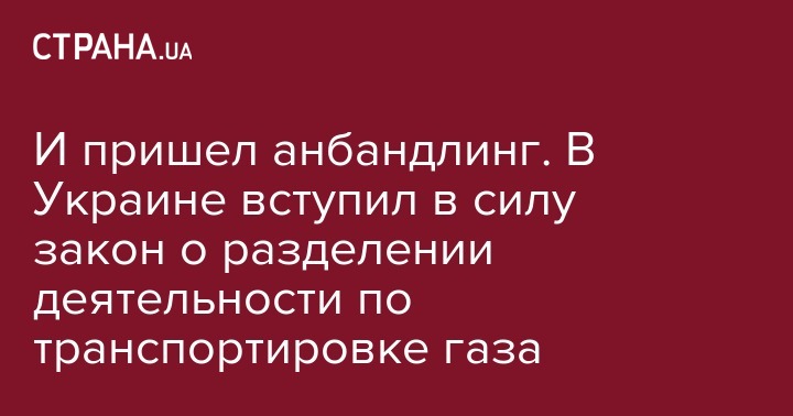 В Украине начал действовать закон № 264-ІХ о разделении деятельности по транспортировке газа . Вчера его официально опубликовали в издании Верховной Рады "Голос Украины".