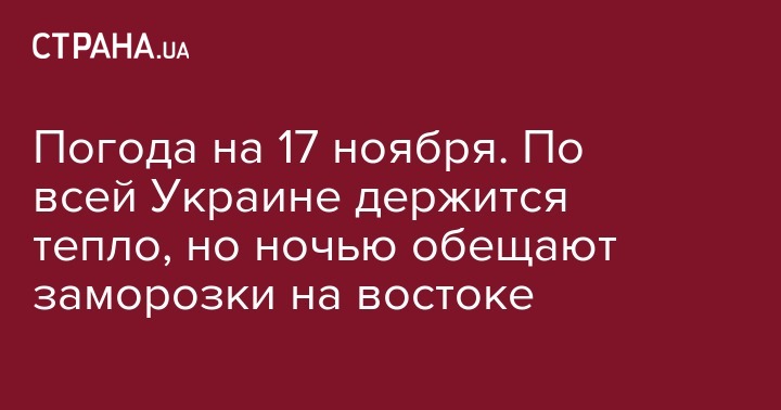 Погода на 17 ноября. По всей Украине держится тепло, но ночью обещают заморозки на востоке