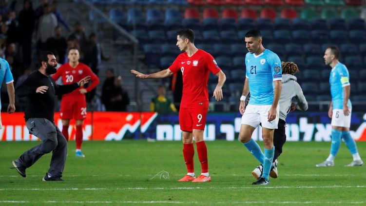 A pitch invader’s just run onto the pitch at the Israel v Poland game and a pursuing police officer has just cleaned out Polish defender Kędziora. pic.twitter.com/VvFMKOKyiZ