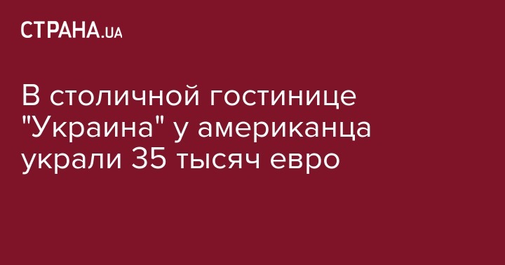 Кража у туриста - гражданина США - произошла вчера в его номере гостиницы "Украина" в центре Киева. Как мы узнали из собственных источников в МВД, американец, вероятно не знакомый с украинскими обычаями, опрометчиво оставил в номере в своих вещах 35 тысяч евро и ушел гулять по городу. Когда вернулся - не нашел денег.