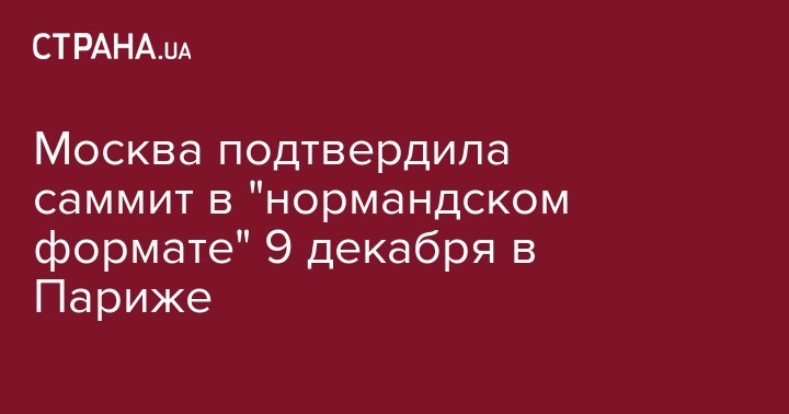 Москва подтвердила саммит в "нормандском формате" 9 декабря в Париже