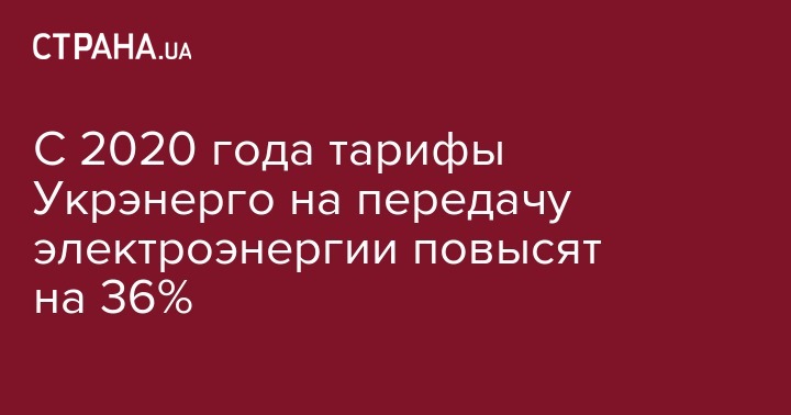 С 2020 года тарифы Укрэнерго на передачу электроэнергии повысят на 36%