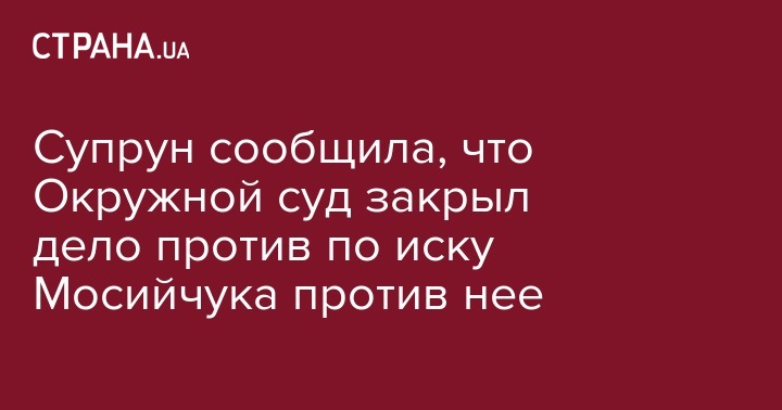 Супрун сообщила, что Окружной суд закрыл дело против по иску Мосийчука против нее