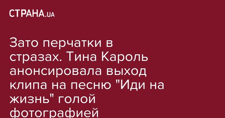 Украинская поп-дива Тина Кароль анонсировала в соцсети премьеру клипа на песню "Иди на жизнь", сопроводив анонс своим фото в одних перчатках. Снимок выложен в Instagram популярной певицы.