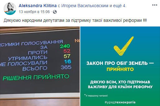 Она поддерживает реформы правительства о рынке земли. О чем свидетельствует даже тематическая рамка на фото аккаунта "Я - за рынок земли".