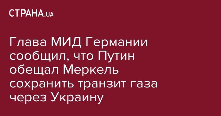 Глава МИД Германии сообщил, что Путин обещал Меркель сохранить транзит газа через Украину
