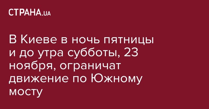 В Киеве в ночь пятницы и до утра субботы, 23 ноября, ограничат движение по Южному мосту