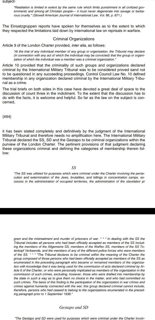 Он отмечает, что после Второй мировой войны международными судами три организации были признаны преступными: СС, СД и Гестапо. "Преступлением являлось само членство в этих организациях, за исключением случаев, когда конкретного персонажа забрали туда насильно", - пишет Бужанский.