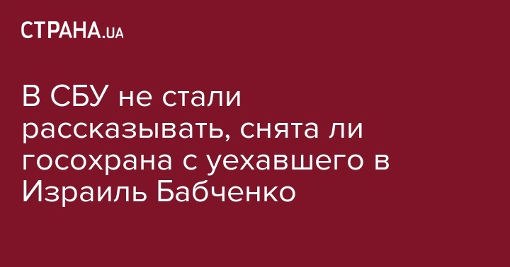 Служба безопасности Украины отказалась сообщить информацию о том, снята ли государственная охрана с российского оппозиционного журналиста Аркадия Бабченко, который покинул Украину. Об этом говорится в ответе СБУ на запрос Украинских новостей.