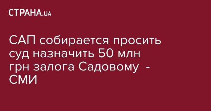 По данным источника, прокуратура не будет просить об избрании Садовому меры пресечения в виде ареста. "Прокуратура будет просить суд избрать меру пресечения в виде залога в размере 50 млн гривен", - сообщил источник.