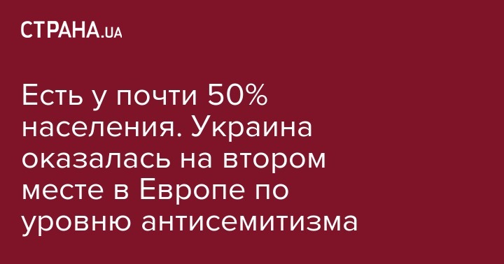 В Украине уровень антисемитизма в 2016 году был 32%. В 2019-м - уже 46%. Наша страна оказалась на втором месте после Польши . Третьей стала Венгрия. Там антисемитские настроения сейчас наблюдаются у 42% жителей (по сравнению с 40% в 2016 году).