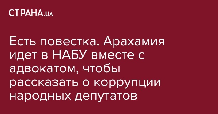 Есть повестка. Арахамия идет в НАБУ вместе с адвокатом, чтобы рассказать о коррупции народных депутатов