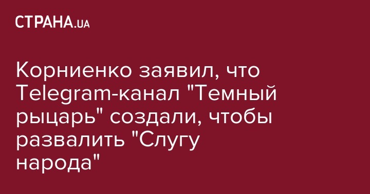 На вопрос журналиста о том, кто в партии Владимира Зеленского "Слуга народа" может вести Telegram-канал "Темный рыцарь", на котором появляется внутрифракционная информация, Корниенко ответил, что "по приколу" часто спрашивают об этом депутатов Александра Дубинского и Максима Бужанского, которые известны активностью в социальных сетях.