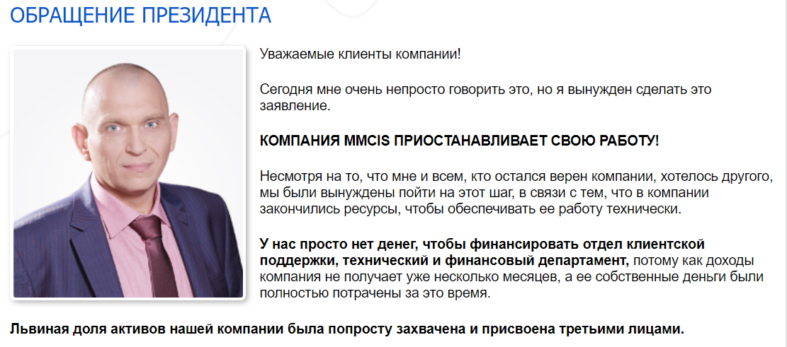 С 2014 года в отношении FOREX MMCIS group расследуется уголовное производство о мошенничестве, в последний раз расследование возобновлялось в 2018 году. Издание "Коммерсант" приводило данные о том, что компания, имеющая признаки финансовой пирамиды, только в России обманула вкладчиков на 70 миллионов долларов.