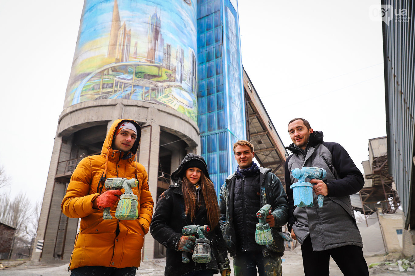 В Запорожье на территории Мокрянского каменного карьера создали крупнейший мурал Украины под названием "Город будущего", над которым три художника трудились около месяц, потратив 20 кг краски. Картина разместилась на бетонных бочках высотой 32 метра и диаметром 11,5 метров, сообщает 061.ua.
