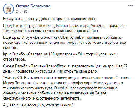 А у вас с чем ассоциируются эти книги?", - написала Богданова.