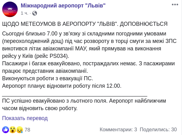 Скриншот: Facebook/Міжнародний аеропорт "Львів"
