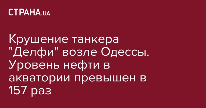 Уровень загрязнения воды продуктами нефти в акватории Черного моря близ Одессы из-за аварии танкера Delfi превышает допустимые концентрации в 157 раз. Об этом сегодня, 23 ноября, сообщил исполняющий обязанности председателя Госэкоинспекции Украины Егор Фирсов на личной странице в Facebook.