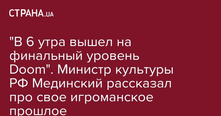Министр культуры России Владимир Мединский рассказал, как в 1992 году купил себе самый дорогой компьютер с игрой Doom, а потом сломал его из-за уверенности в том, что становится "игроманом". Об этом сообщает РБК.