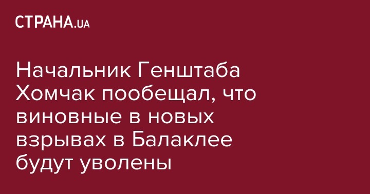 Начальник Генштаба ВСУ Руслан Хомчак заявил, что недавняя трагедия на складах боеприпасов возле Балаклеи стала следствием должностной халатности, и виновные в инциденте лишатся своих полномочий.