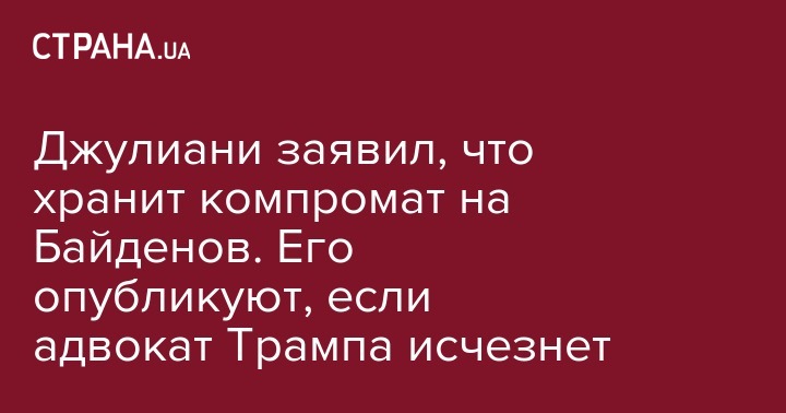 Адвокат президента США Дональда Трампа Руди Джулиани заявил, что у него есть компромат на семью бывшего вице-президента США Джо Байдена. Об этом он написал в своем Twitter.