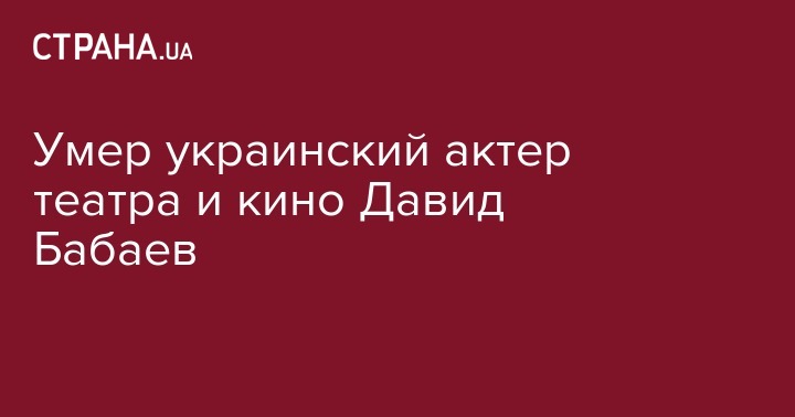 Сегодня, 24 ноября, стало известно о смерти актера Национального театра русской драмы имени Леси Украинки Давида Бабаева. Об этом сообщил актер Вячеслав Василюк в Facebook.