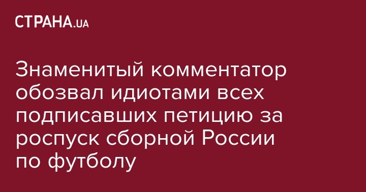 Известный футбольный комментатор Василий Уткин  нелицеприятно высказался о почти миллионе граждан России, которые подписали электронную петицию о роспуске сборной по футболу,  и навал их идиотами.