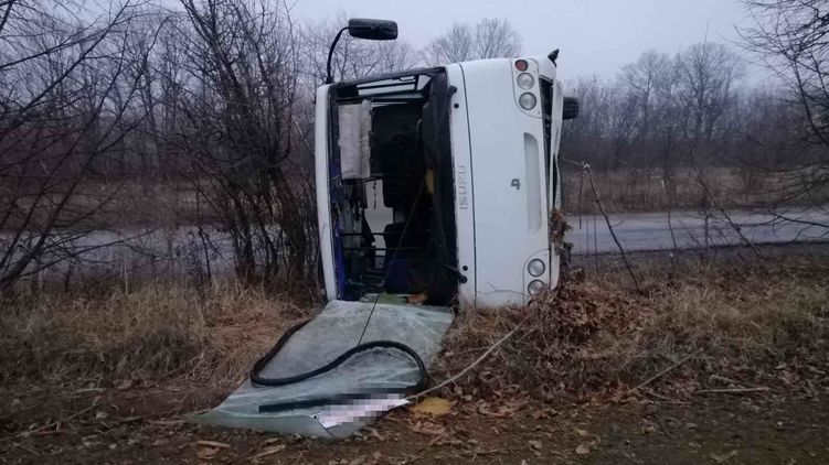 Перевернувшийся автобус. Фото: vn.npu.gov.ua
