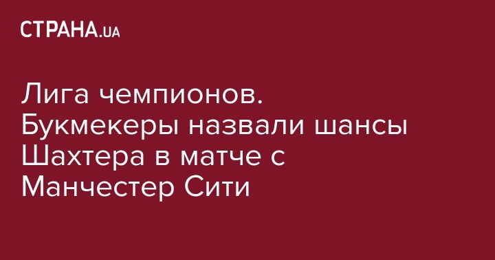 Лига чемпионов. Букмекеры назвали шансы Шахтера в матче с Манчестер Сити