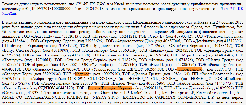 Все три фирмы указаны в определении Шевченковского райсуда столицы по указанному уголовному производству.