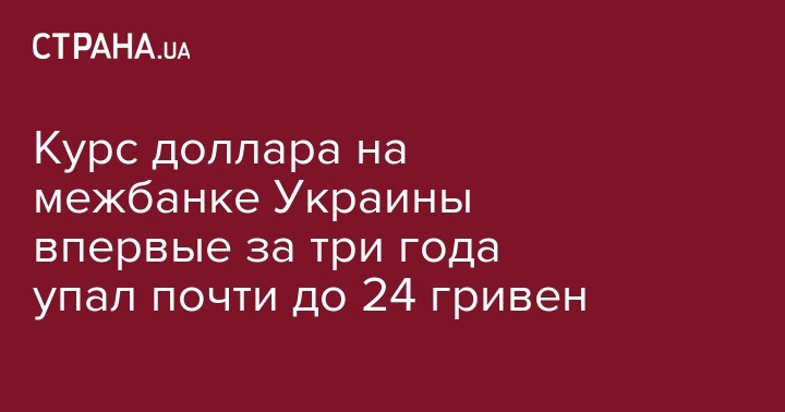 Курс доллара на межбанке Украины впервые за три года упал почти до 24 гривен