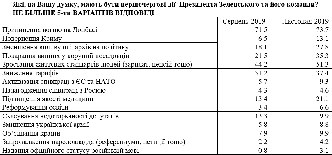 В ноябре на 2,2% выросло количество людей, которые ждут от нового президента прекращения войны. Теперь их 73,7%.