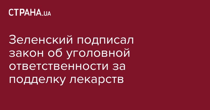 Президент Украины Владимир Зеленский подписал закон об усилении уголовной ответственности за фальсификацию лекарств, который Верховная Рада приняла 12 ноября. Об этом сообщается в понедельник вечером на сайте главы государства.